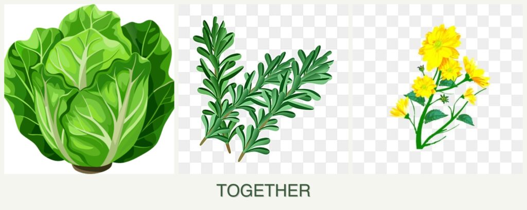 What should not be planted with lettuce, rosemary, and calendula?