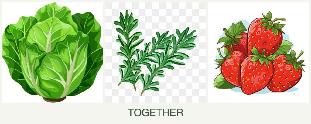 Planting lettuce, rosemary, and strawberries together can offer several advantages: