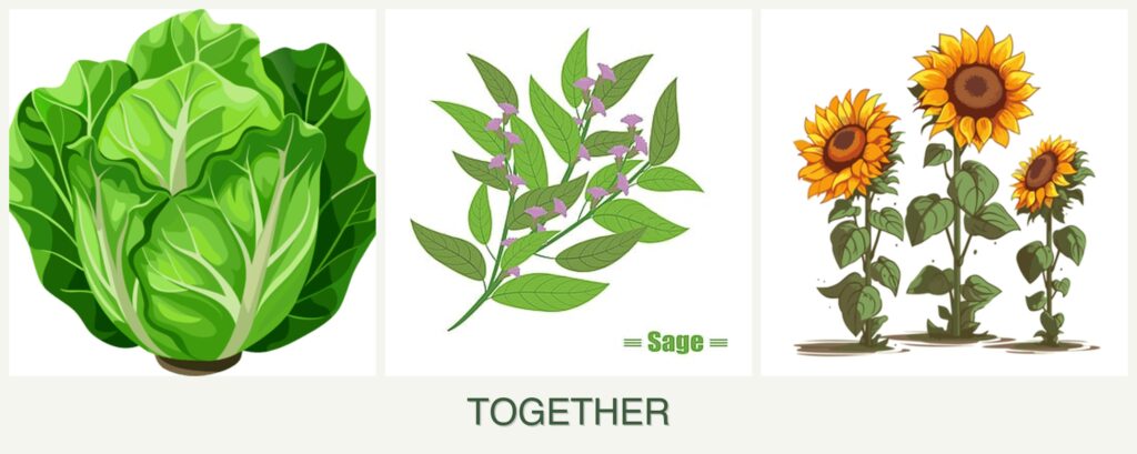 - Sage acts as a natural pest deterrent, repelling cabbage moths and carrot flies, which can benefit both lettuce and sunflowers.