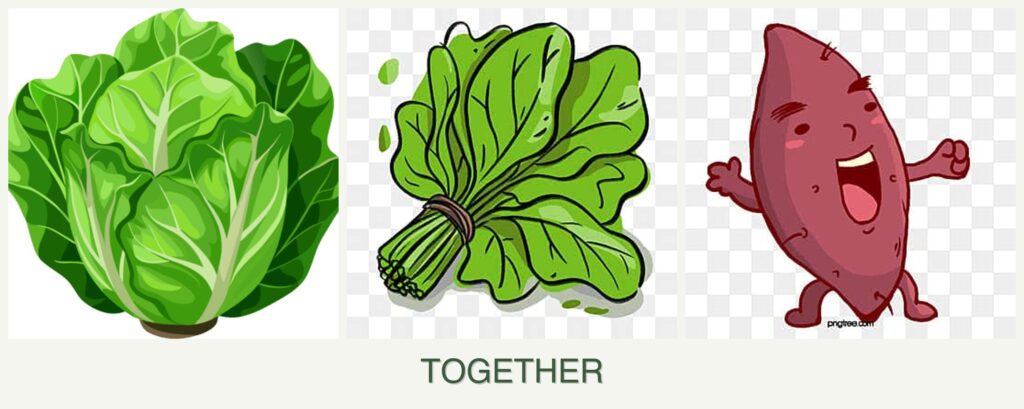 - Nutrient Needs: While lettuce and spinach are heavy feeders, sweet potatoes are less demanding, making them compatible in nutrient-sharing.