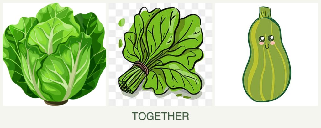 Planting lettuce, spinach, and zucchini together offers several advantages: