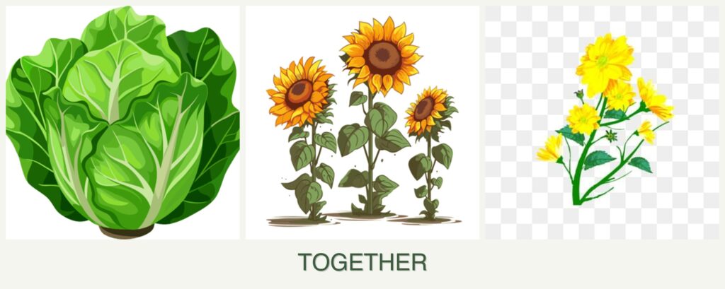 Planting lettuce, sunflowers, and calendula together offers several benefits: