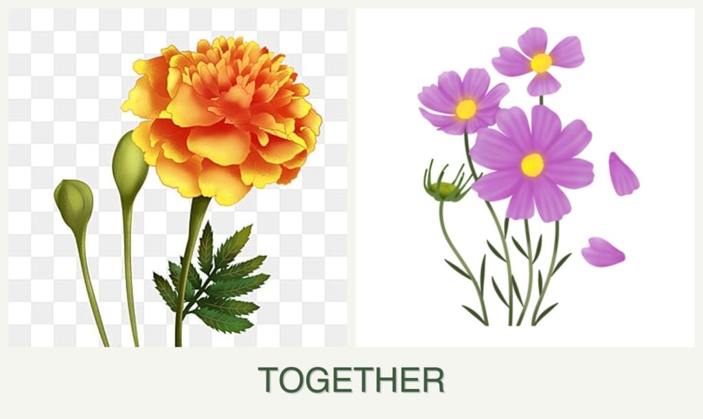 - Pest Control: Marigolds deter nematodes and other pests, protecting cosmos.