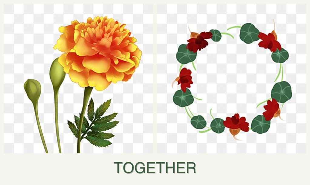 - Pest Control: Marigolds are known to repel nematodes and other pests, while nasturtiums deter aphids and whiteflies.