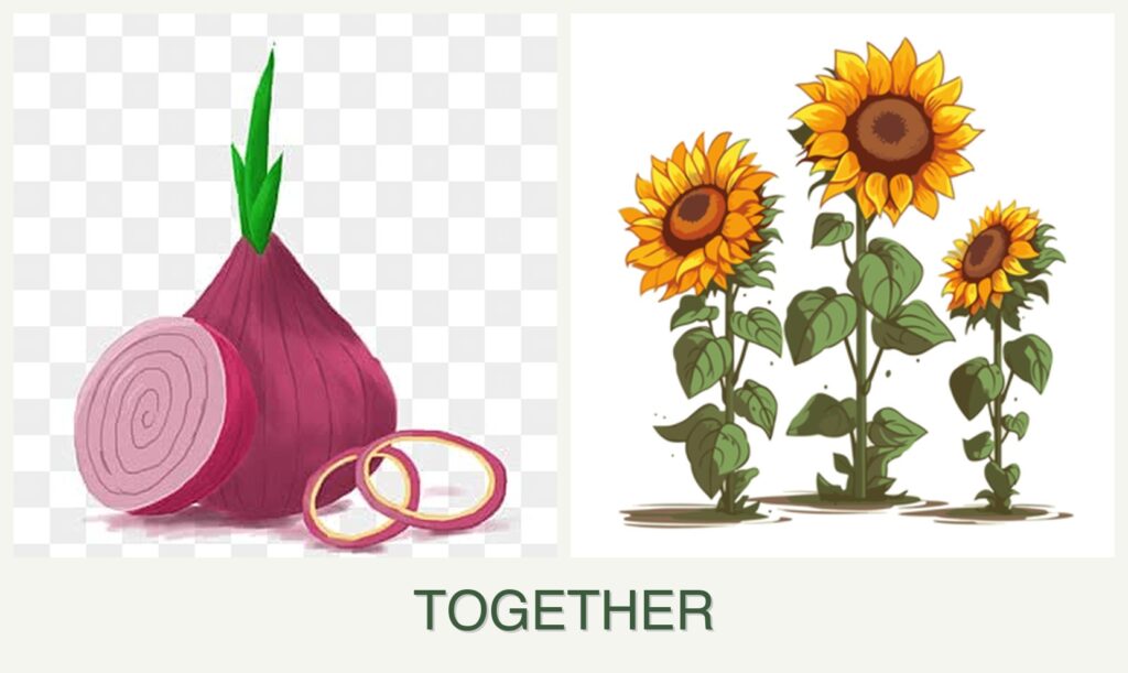 - Pest Control: Onions can repel pests such as aphids, which often target sunflowers.