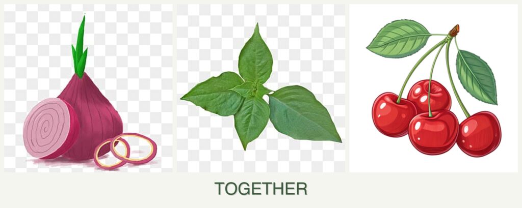 - Pest Repellent Properties: Onions’ strong scent can deter aphids and other pests that might harm basil and cherries.