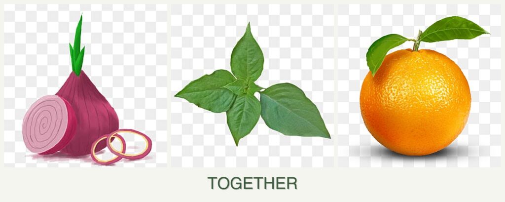 - Spacing: The large root system of orange trees can compete with the smaller root systems of onions and basil.
