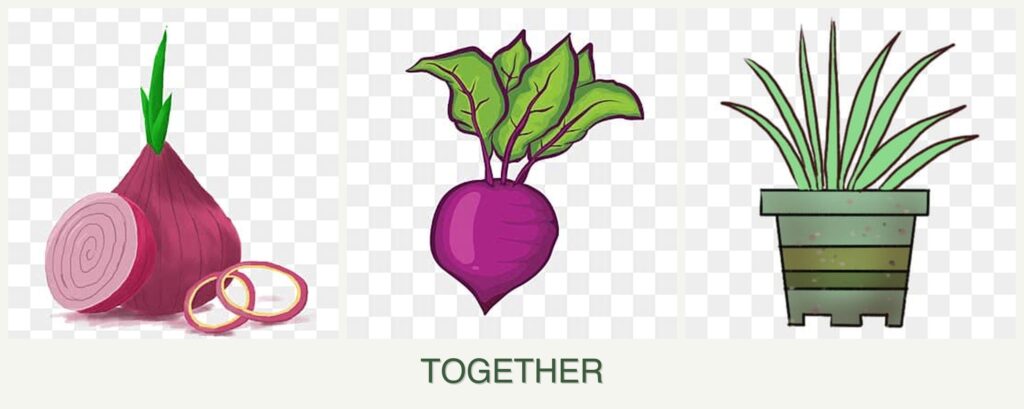 Pest Control: Onions are natural pest repellents, deterring insects that might otherwise harm beets and lemongrass.
