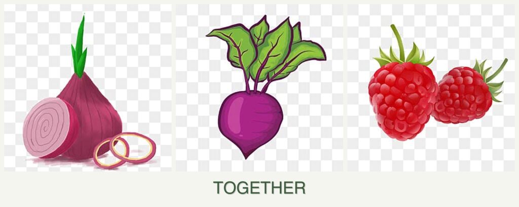 - Nutrient Needs: Beets and onions have similar soil nutrient needs, while raspberries can benefit from the nitrogen fixed by onions.