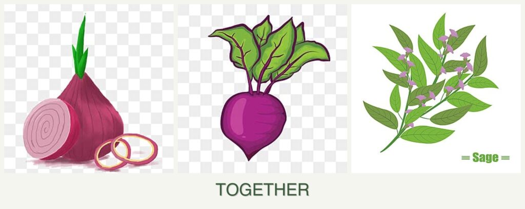 - Pest Control: Onions and sage help repel pests like aphids and beetles, which can otherwise harm beets.
