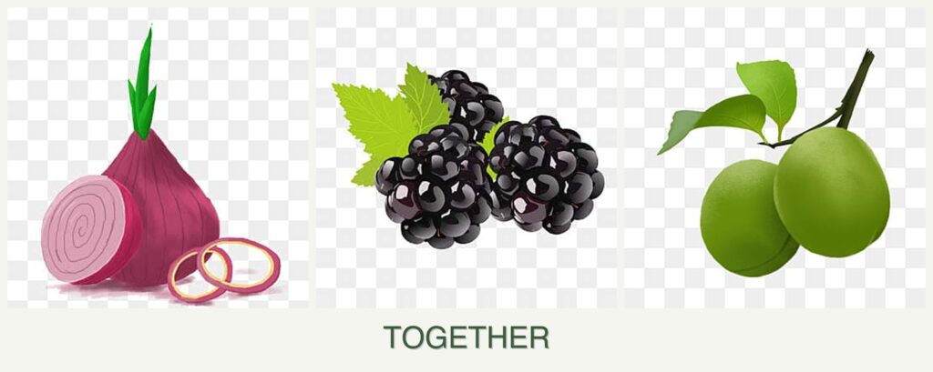 While planting onions, blackberries, and plums together may not be ideal, each plant can benefit from other companions: