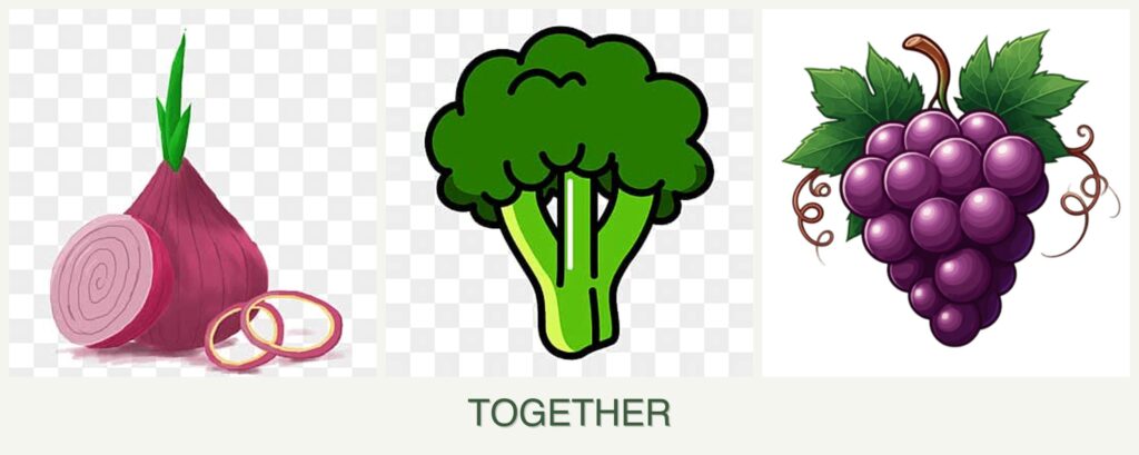 - Space and Sunlight Competition: Grapes can overshadow onions and broccoli, limiting their growth.