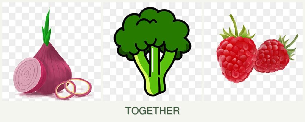 While onions and broccoli can benefit from being planted together due to onions’ pest-repelling properties, introducing raspberries complicates matters. However, some general benefits of companion planting include: