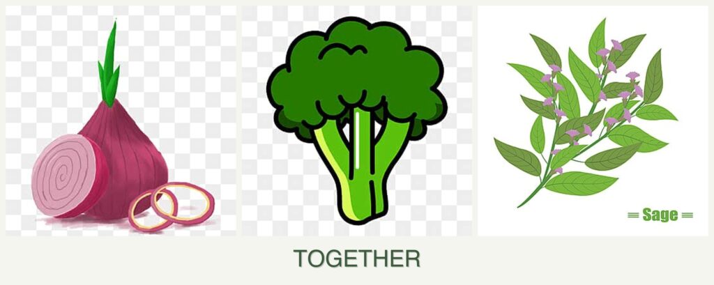 - Pest Control: Onions and sage can help protect broccoli from pests like cabbage moths.