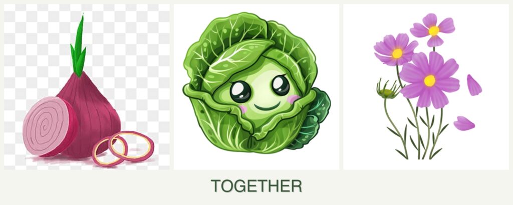 - Pest Control: Onions deter pests that commonly attack cabbage, while cosmos attracts beneficial insects.