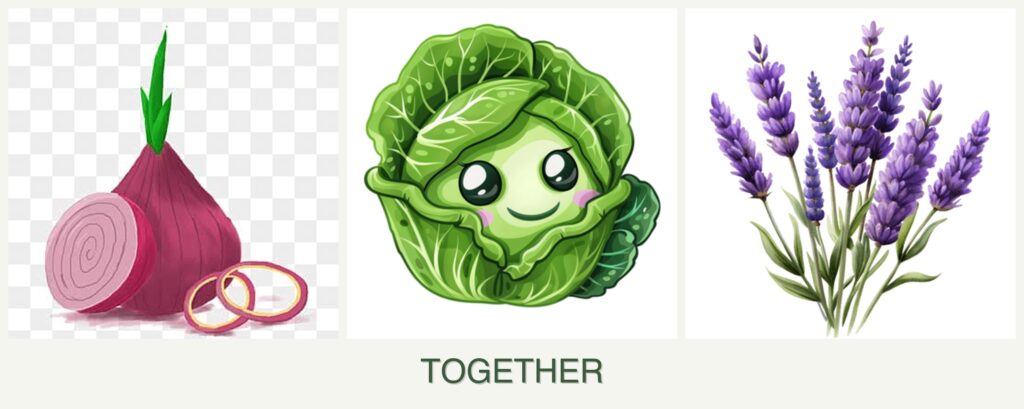 - Pest Control: Onions can repel pests harmful to cabbage, while lavender can attract pollinators and beneficial insects that help keep pest populations in check.