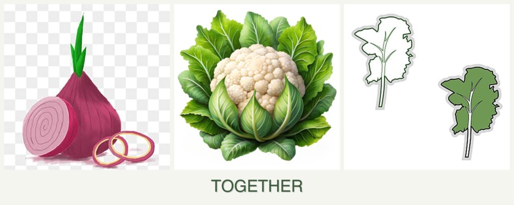- Improved Growth: Kale and cauliflower benefit from the reduced pest pressure due to onions.