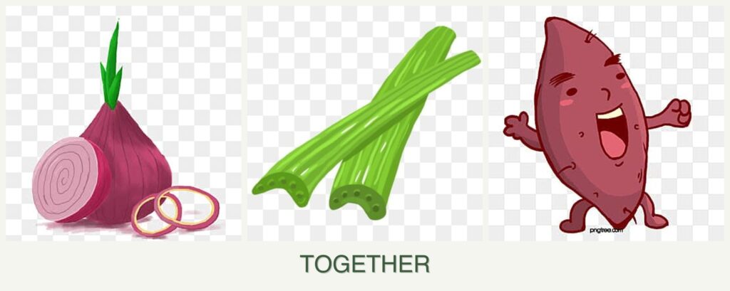 Planting onions, celery, and sweet potatoes together can offer several benefits: