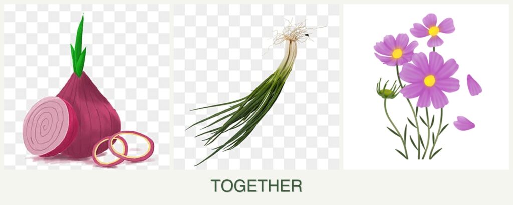 - Pest Control: Onions and chives emit a strong scent that deters pests like aphids and Japanese beetles, providing a natural protective barrier for cosmos.