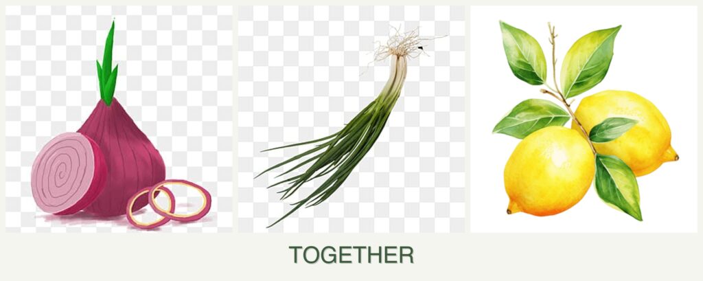 - Pest Control: Onions and chives repel aphids and other insects, benefiting each other, but lemons require different pest management strategies.