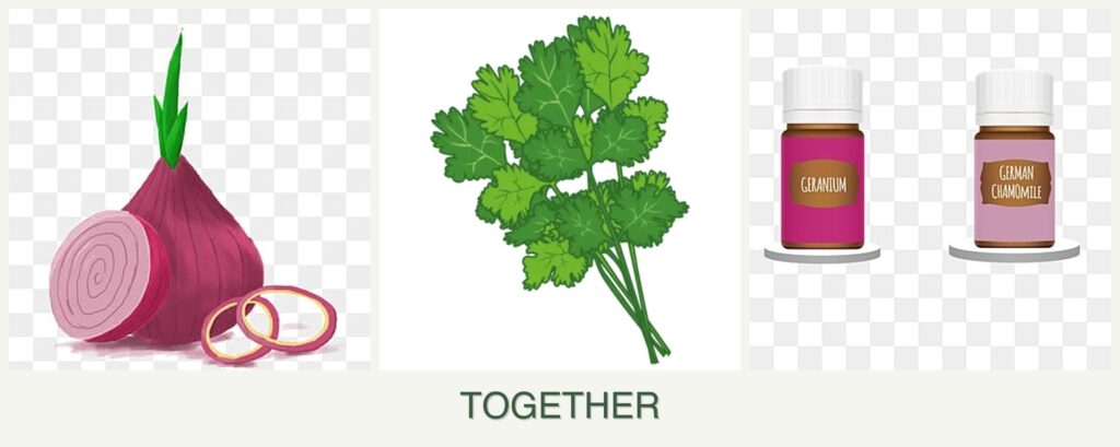 Pest Repellent Properties: Onions and geraniums act as natural pest deterrents, protecting cilantro from common garden pests.