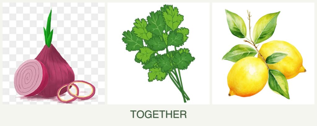 While planting onions, cilantro, and lemons together isn’t ideal, there are some benefits when considering other companion plants: