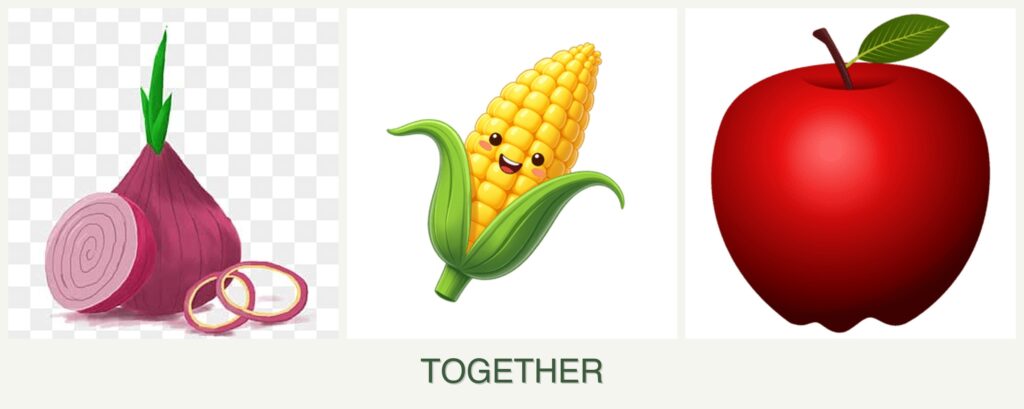 - Growth Requirements: Onions and corn have similar sunlight and water needs, while apples demand more space and specific soil conditions.