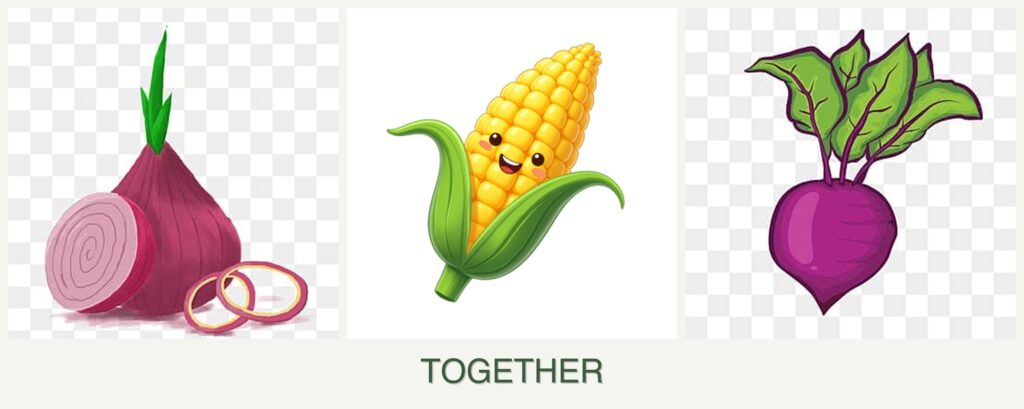 - Competition for Resources: Corn’s high nutrient demand may affect the growth of onions and beets.