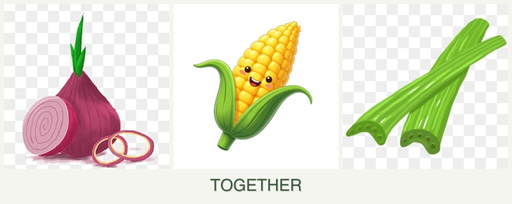 - Competition for Resources: Corn’s high nutrient demands can overshadow onions and celery if not managed.