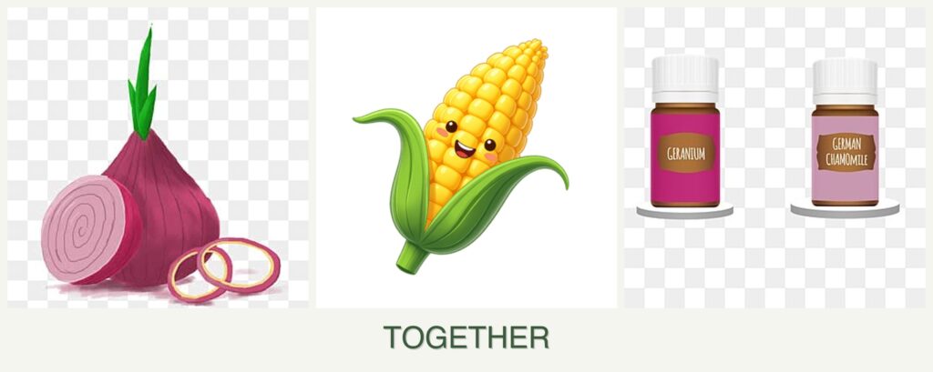 - Competition for Resources: Corn’s high nutrient and water demands can overshadow onions and geraniums. Ensure adequate soil fertility and consistent watering.