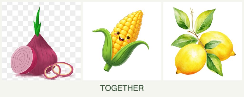While onions, corn, and lemons may not be ideal companions, planting onions with corn can offer benefits: