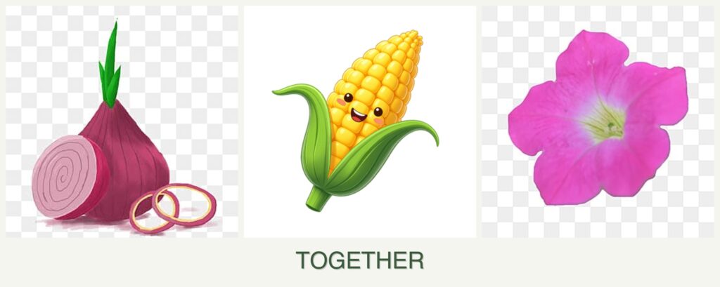 - Petunias attract pollinators and beneficial insects, which can enhance the growth of both corn and onions.
