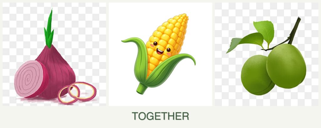 - Resource Competition: Corn’s high nutrient demand can deprive onions and plums of essential resources.