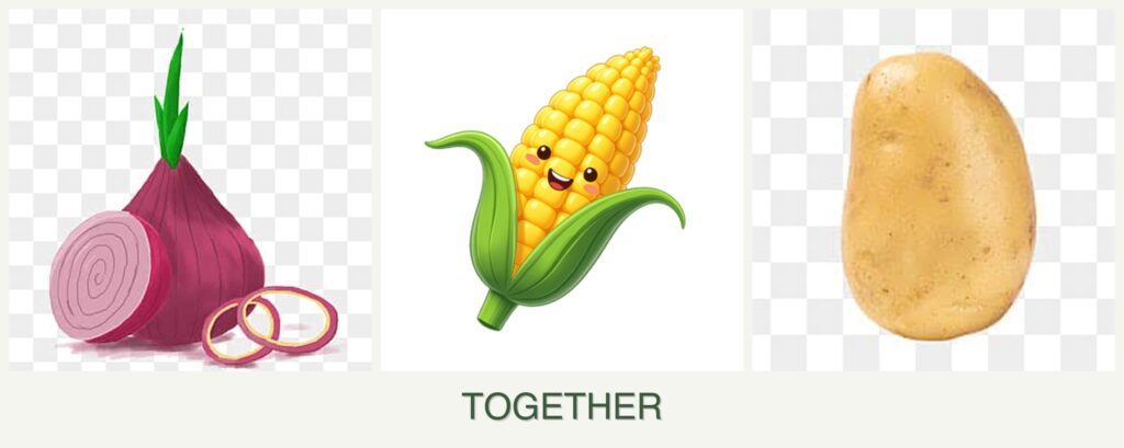 - Growth Requirements: Onions and corn thrive in similar conditions, whereas potatoes have different needs.