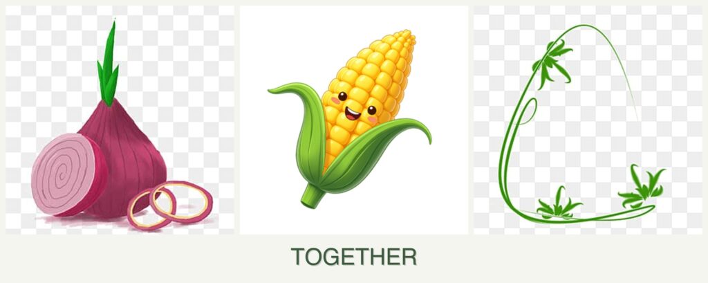 - Onions are known for their pest-repellent properties, which can help protect corn from pests like aphids.