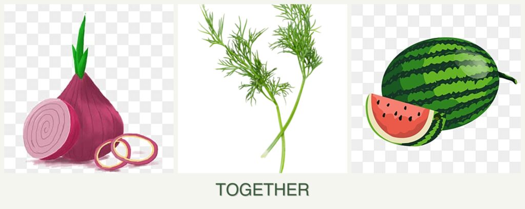 - Harvesting Considerations: Melons require more space to harvest, potentially disturbing onions and dill.
