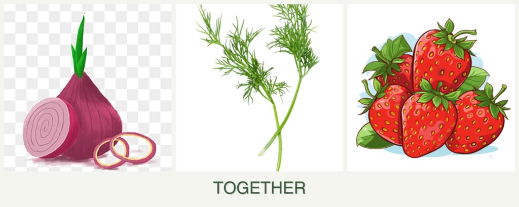 - Improved Growth: The presence of dill can enhance the flavor of strawberries, while onions help deter pests that may otherwise damage the strawberries.