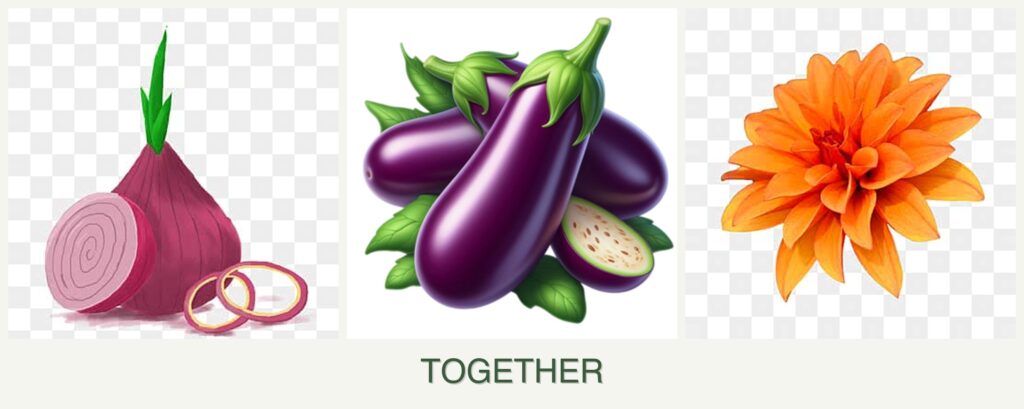 However, it’s important to note that while these plants can coexist, they have different growth requirements. Onions prefer cooler weather and can tolerate partial shade, whereas eggplants thrive in full sun and warm temperatures. Dahlias also enjoy full sun but have different nutrient needs. Understanding these differences is key to successful companion planting.