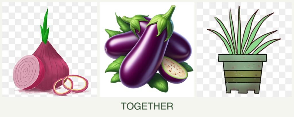 - Pest Repellent Properties: Onions and lemongrass act as natural insect repellents, protecting eggplants from common pests like aphids and spider mites.