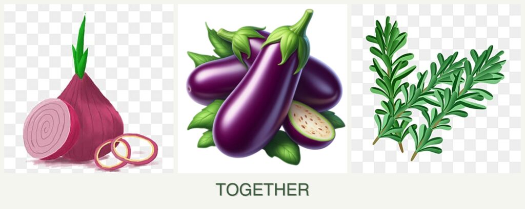 - Pest Control: Onions can help deter pests that might otherwise attack eggplants, such as aphids and spider mites. Rosemary’s strong scent can also repel certain insects, providing a natural form of pest control.