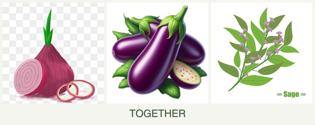 - Pest Control: Onions and sage can help protect eggplants from common pests.