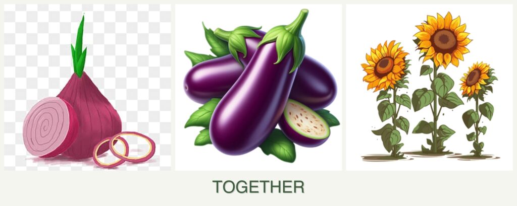 - Pest Repellent Properties: Onions can deter pests that might otherwise target eggplants and sunflowers, reducing the need for chemical interventions.