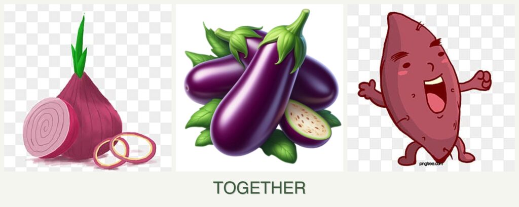 Planting onions, eggplant, and sweet potatoes together offers several advantages: