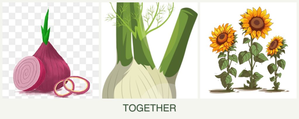 Optimal Spacing: Ensure adequate spacing to prevent competition—4-6 inches for onions, 12-18 inches for fennel, and 12-24 inches for sunflowers.