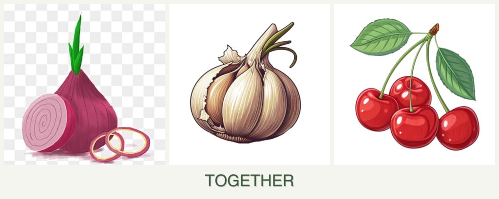 - Pest Control: Onions and garlic are natural pest repellents, which can benefit cherries by keeping certain pests at bay.