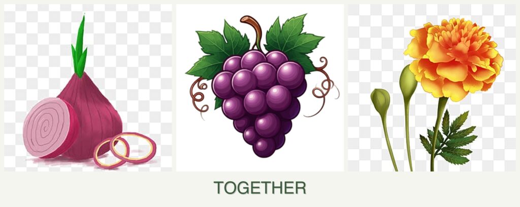 - Pest Control: Onions and marigolds can help protect grapes from pests like aphids and nematodes.