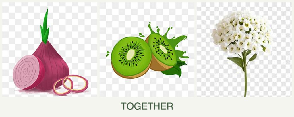 - Pest Control: Onions are known for their pest-repelling properties, which can benefit both kiwi and alyssum by deterring common pests.