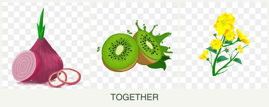 Kiwi: This plant requires a different environment. Kiwi vines need ample space, sturdy support, and specific climate conditions to thrive, which can complicate their integration with onions and calendula. Kiwi’s water needs and soil preferences also differ significantly.