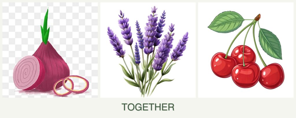 - Soil Preparation: Amend soil with organic matter to improve drainage for lavender and nutrient retention for onions and cherries.