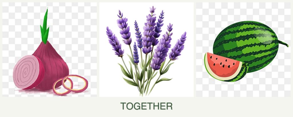 Onions and Lavender: Both plants can benefit from each other. Lavender’s aromatic oils help repel pests that commonly affect onions, while onions can deter some insect pests from lavender.